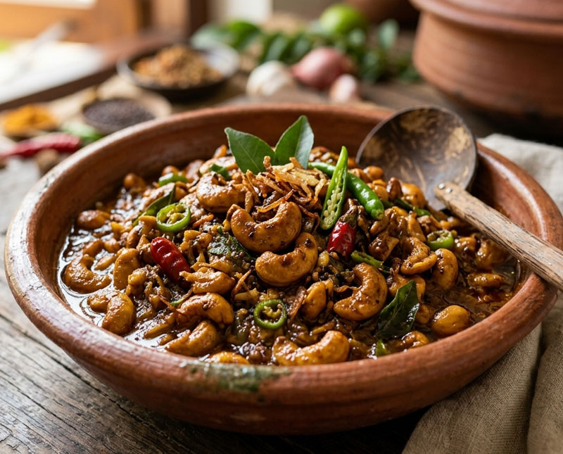 කජුමද කපා කහ අතුරා හොඳින් පොල්තෙල් වලින් බැද ගන්න. ඉන්පසු එයට සුදුලූනු , රතු ලූනු. අමුමිරිස් යොදා බැදගන්න. එයට අබ, ලුණූ, කහ, ගම්මිරිස්, විනාකිරිත් අඹරා විනාකිරි ටිකක් ලිප තබා රත්කර ගන්න. ලිපෙන් බා අවසන් වු පසු මද රස්නයට පැමිණී විට බැදගත් රටකජු, ලූනු, අමුමිරිස්, දමා කවලම් කරගන්න. මෙය කලක් තබා ගත හැකිය.